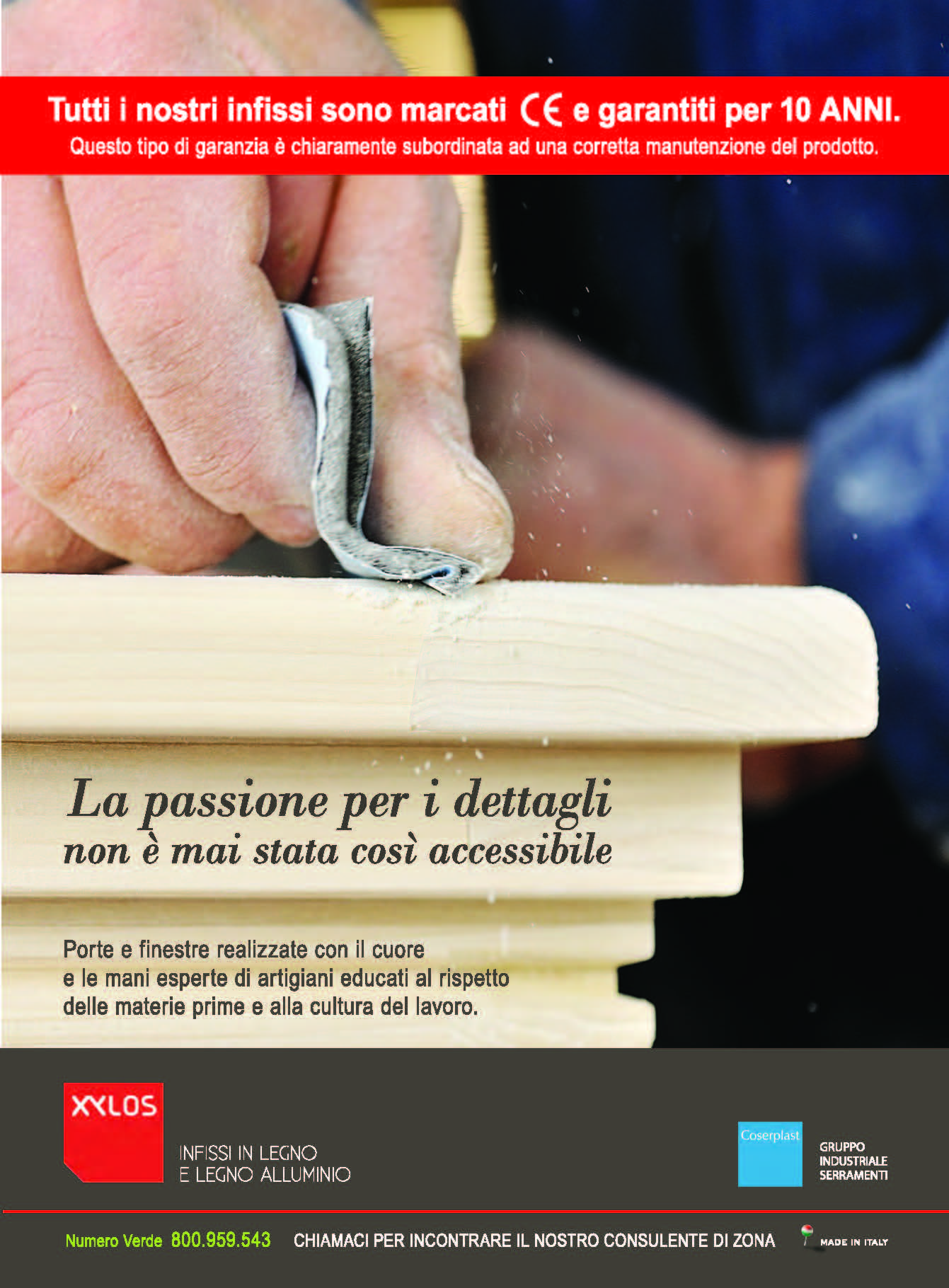 Serramenti in legno lamellare costituito da almeno 3 tavole di legno, sia per profilo telaio fisso che anta mobile, incollate con collante in classe D4 secondo la specifica prevista dalla norma EN 204.